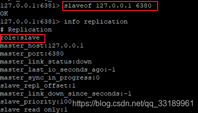 再看6381,此时role已经变为master,并且从机连接数量为1(6382):