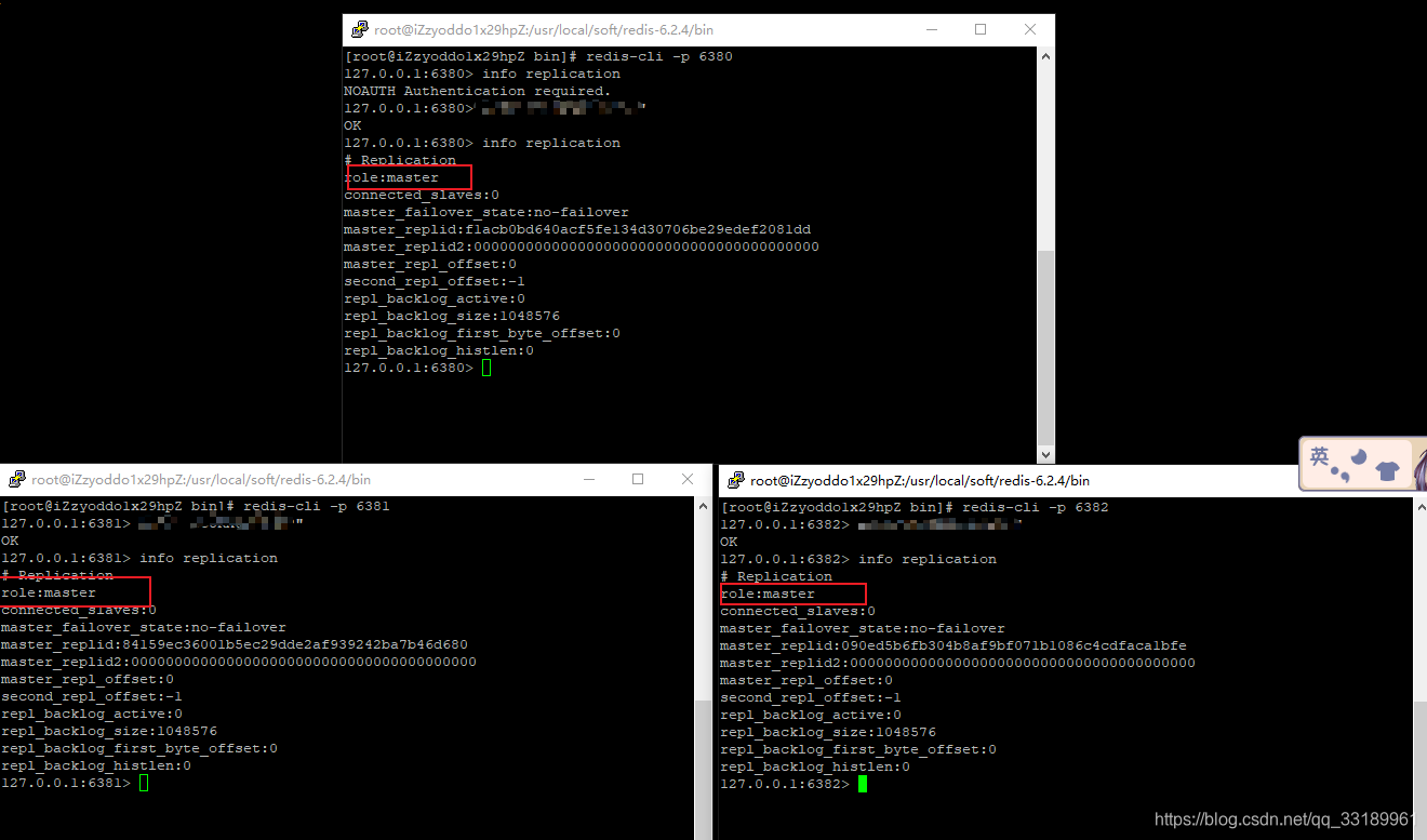 此时虽然启动了三个redis实例,但并不具备主从属性,可以连接redis-cli用info replication查看: