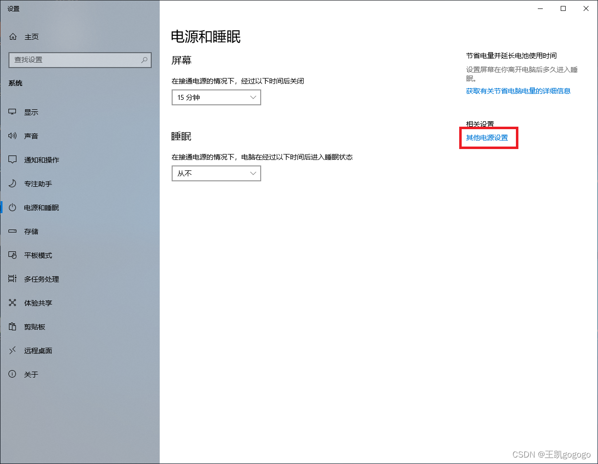 点击其它电源设置