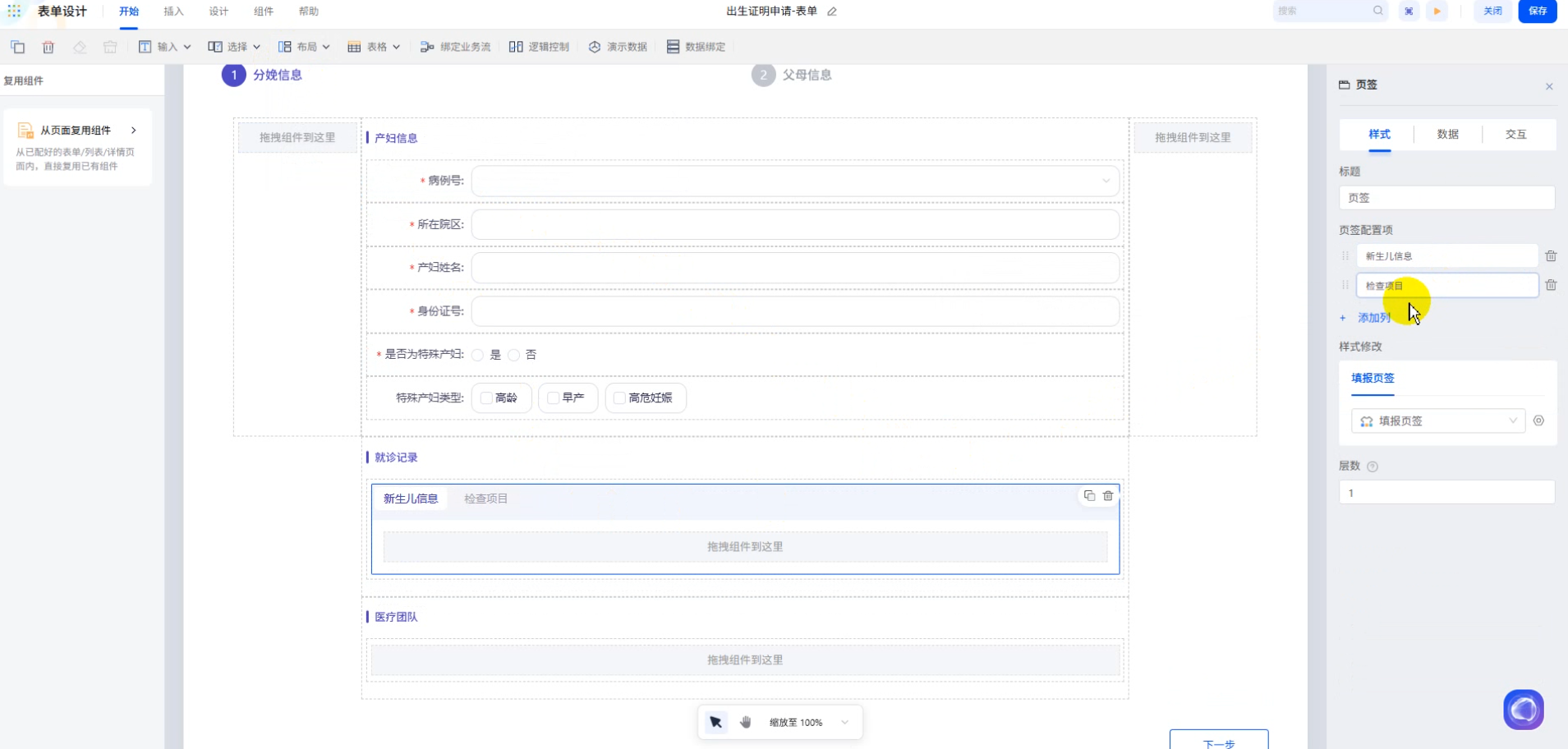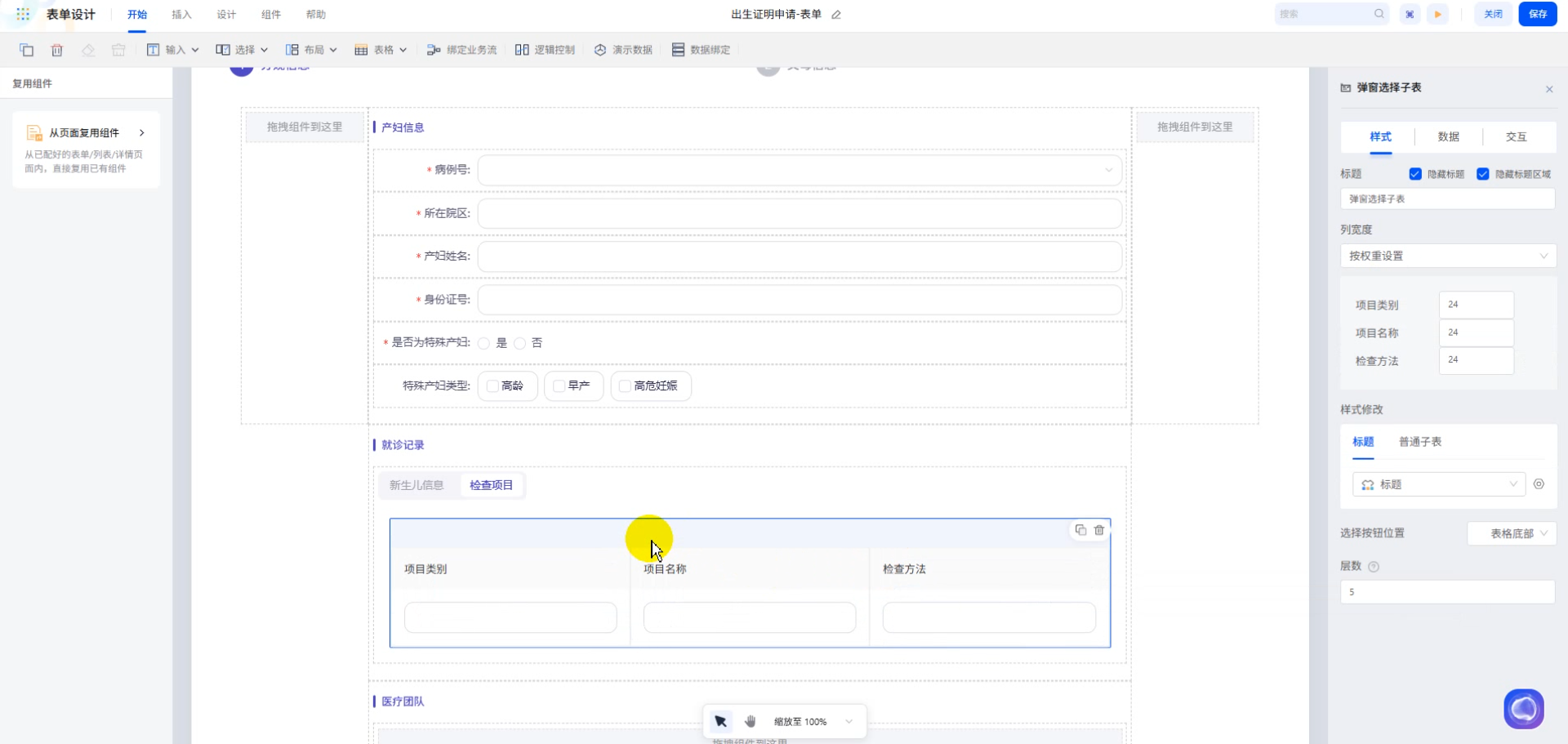 smardaten 无代码平台在构建医院出生证明登记表单过程中表现卓越: