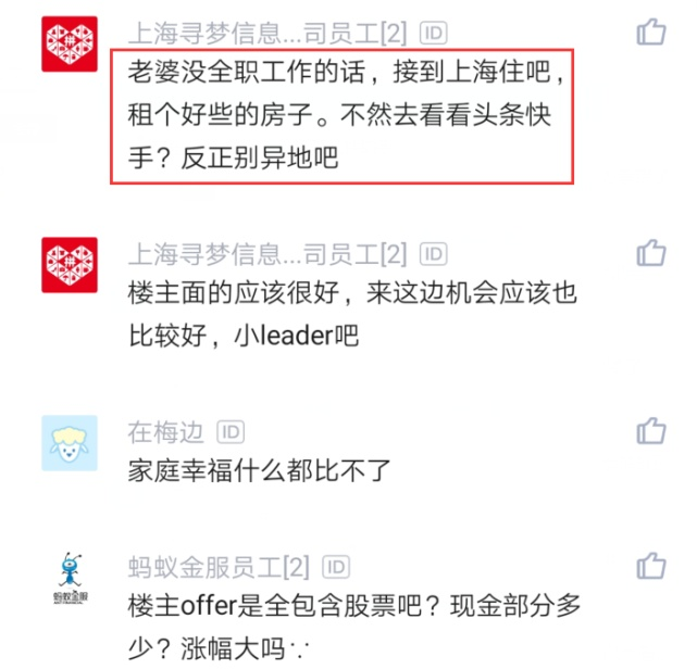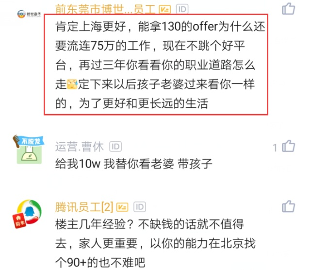 员工其实是有点想去拼多多的,毕竟年薪涨了快1倍了,但是又要背井离乡去上海,自己老婆和孩子又不太可能跟着去上海,现在也很纠结要去要去拼多多。另外一点,因为拼多多上班时间挺长的,也不知道能不能每半个月左右请假一次回北京看家人。