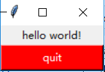 quit = tkinter.Button(top, text="hello world!", command=top.quit) # 这里是创建一个有功能按钮(quit),而不是标签
