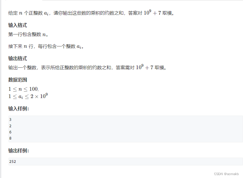 约数个数: (c1 + 1) * (c2 + 1) * ... * (ck + 1)