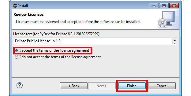 在 安装 PyDev 之前,您 必须接 受 许可协议: