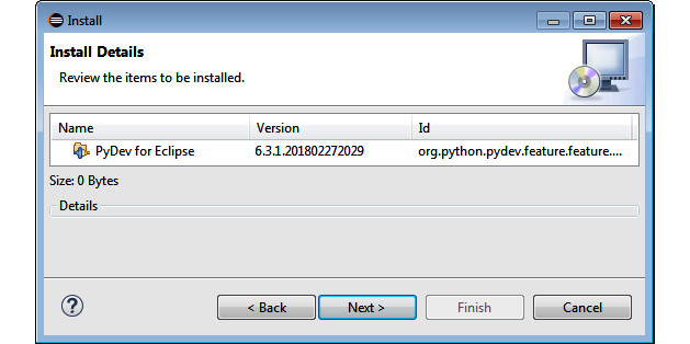 完成此步骤后,您将获得 Eclipse 的 Python 支持 。 您可以通过点击 帮助 | 关于 Eclipse IDE | 安装 详细信息 .