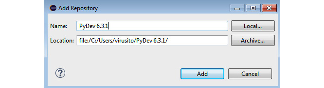 图 3.4 – 将 PyDev 添加为 Eclipse 本地仓库