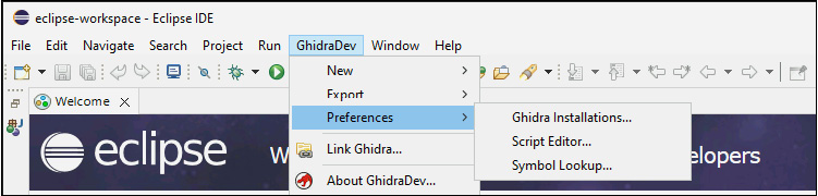 我们选择使用 Eclipse IDE(GitHub & BitBucket HTML Preview),因为它是 Ghidra 官方唯一支持的开发环境。 技术上虽然可以使用其他 IDE,但它们不受官方支持。Ghidra 9.0 版本的调试模式功能存在严重安全漏洞,因此请使用更高版本的程序部署开发环境。 本书撰写时当前安全稳定的版本 是11.0.1