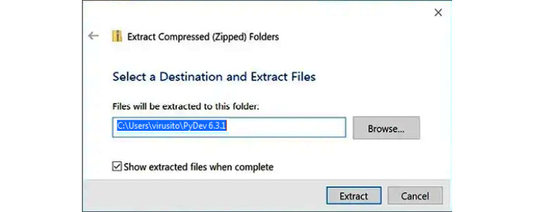 将 PyDev 6.3.1.zip 的所有内容解压到名为 PyDev 6.3.1 的文件夹中 :