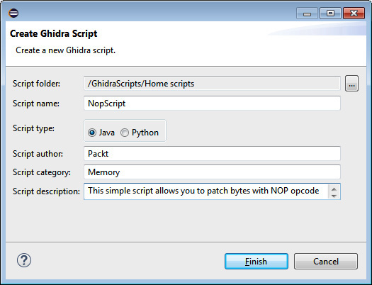 图 3.32 – 创建 NopScript.java Ghidra 脚本
