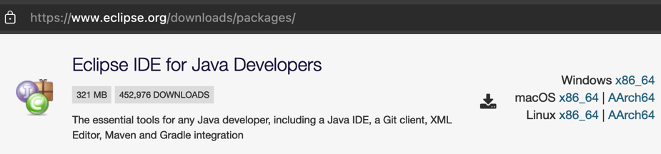 图 3.1 - 下载面向 Java 开发者的 Eclipse IDE