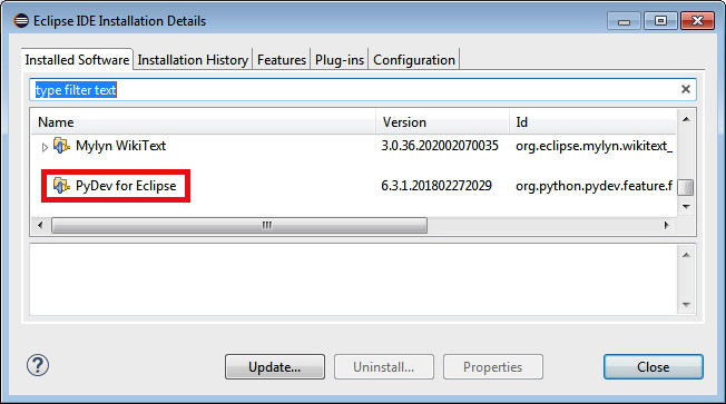 图 3.10 - 验证 PyDev 已成功安装到 Eclipse 中