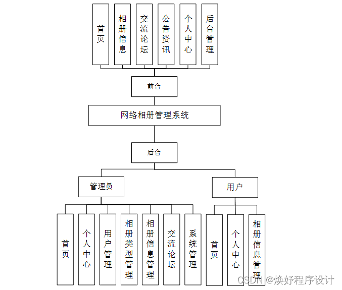 系统架构图属于系统设计阶段,系统架构图只是这个阶段一个产物,系统的总体架构决定了整个系统的模式,是系统的基础。网络相册管理系统的整体结构设计如图4-2所示。