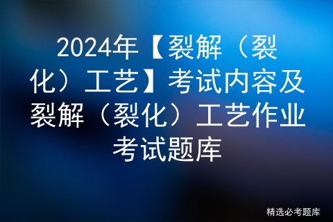 裂解(裂化)工艺考试内容根据新裂解(裂化)工艺考试大纲要求,安全生产模拟考试一点通将裂解(裂化)工艺模拟考试试题进行汇编,组成一套裂解(裂化)工艺全真模拟考试试题,学员可通过裂解(裂化)工艺作业考试题库全真模拟,进行裂解(裂化)工艺自测。