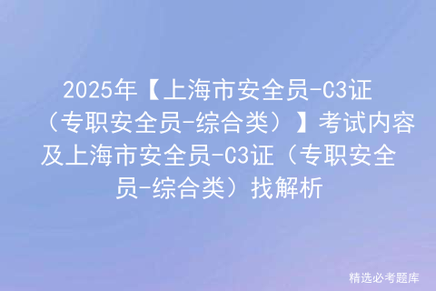 上海市安全员-C3证(专职安全员-综合类)考试内容是安全生产模拟考试一点通生成的,上海市安全员-C3证(专职安全员-综合类)证模拟考试题库是根据上海市安全员-C3证(专职安全员-综合类)最新版教材汇编出上海市安全员-C3证(专职安全员-综合类)仿真模拟考试。2025年【上海市安全员-C3证(专职安全员-综合类)】考试内容及上海市安全员-C3证(专职安全员-综合类)找解析