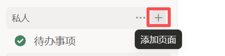 (1) 新建一个页面,在左侧菜单栏,“私人” 菜单的右侧有个 “+” 号,点击,就会新增一个空白页面出来