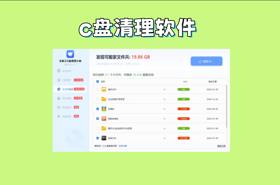 优点是对小白用户非常友好,效率高且不容易误删系统文件,是应对电脑C盘满的最快速办法。