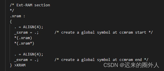 首先需要将XSRAM段添加到.ld文件中,如下: