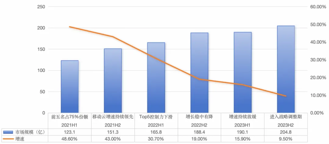 首先,行业竞争日益激烈,以往的蓝海市场或空白领域已逐渐饱和,企业普遍面临同质化竞争的挑战。以公有云市场为例,2021-2023 年公有云市场增速迅速降温,同时新玩家的入局使得竞争日趋激烈。在如此高度竞争的环境中,更低的成本与更高的质量成为了企业在市场中立足的决定性因素。