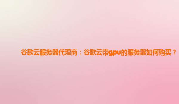 谷歌云服务器代理商:谷歌云带gpu的服务器如何购买?