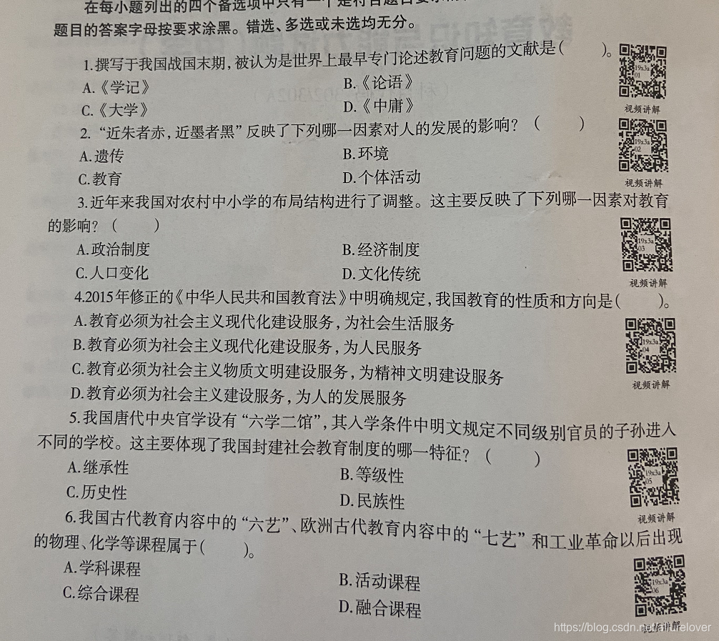1、《学记》是人类历史上最早出现专门论述教育问题的著作