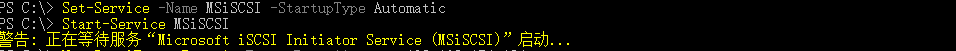 首先,我们需要将Microsoft iSCSI服务设置为自动,然后启动该服务。为此,我们运行以下命令: