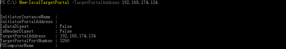 new-iscsitargetportal -TargetPortalAddress <targetIP>