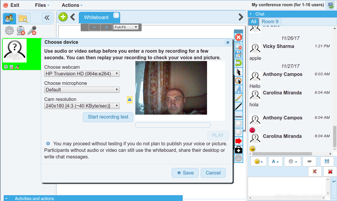 有四个使用OpenMeetings音频/视频功能的选项,您可以在会议期间选择它们。