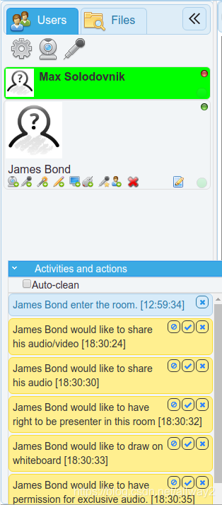 MyRooms部分。默认情况下,每个用户都有2个私人房间,该房间始终仅供该用户访问。有一些按钮可从仪表板进入这些房间。
