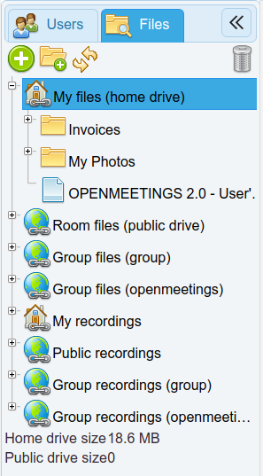 File-Explorer中的私有和公共驱动器。File-Explorer有两个不同的视图,一个是Private Drive,另一个是Public Drive。专用驱动器始终包含相同的文件。这些文件仅对当前登录的用户可见。公共驱动器不与用户绑定,而是与会议室绑定。会议室中的所有用户都可以访问公共驱动器。
