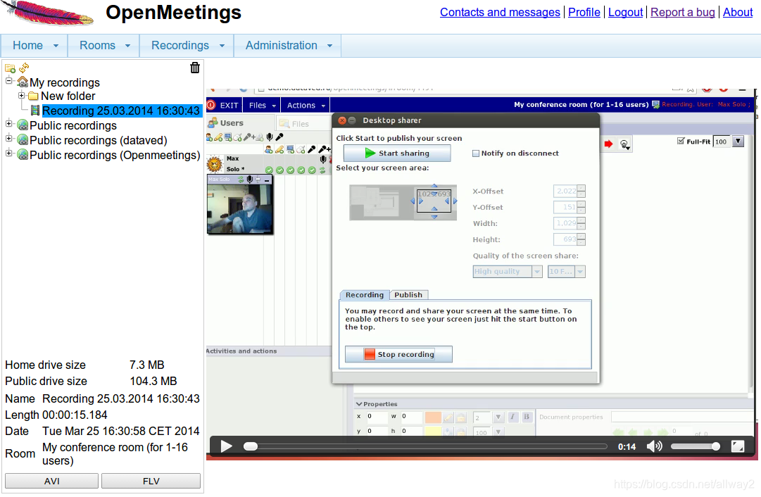 Openmeetings提供视频会议,即时消息传递,白板,协作文档编辑和其他组件软件工具。它使用Media Server的API函数进行远程处理和流传输(Red5或Kurento)。