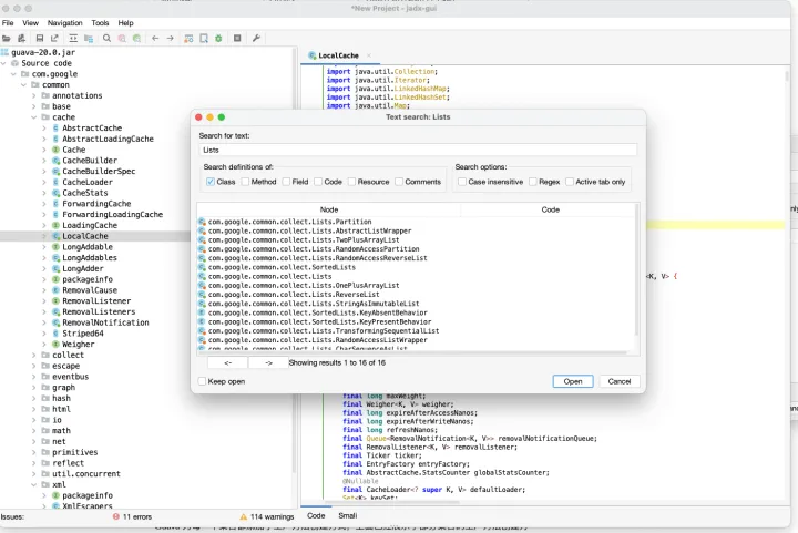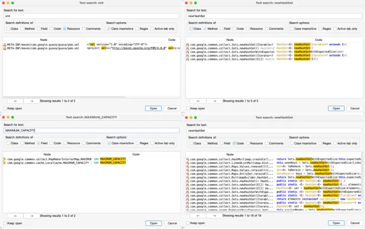 jadx 自带强大的搜索功能,支持多种匹配模式。