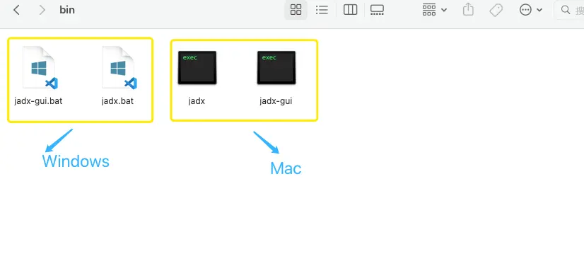 下载之后,解压下载好的 jadx 压缩文件后进入 bin 目录即可找到可执。