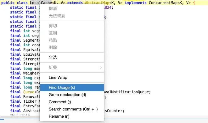 对于某个类、变量或者方法,我们还可以查看哪些地方使用了它。