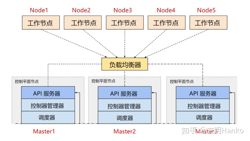 每个控制平面节点运行 kube-apiserver、kube-scheduler 和 kube-controller-manager 实例。 kube-apiserver 使用负载均衡器暴露给工作节点。