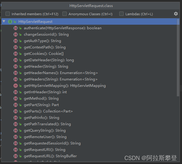 如上图:该接口中可以获取请求的各种信息,包括如下getRequestURI()返回请求行中的参数部分。getHeader(string name)获取请求头。getParameterValues(String name)获取请求参数。getParameterMap()。