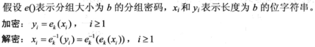 是将明文序列划分成等长的分组(Block),对每一组用同一加密算法和同一密钥进行加密。常见的DES、AES、IDEA等都是分组密码算法。