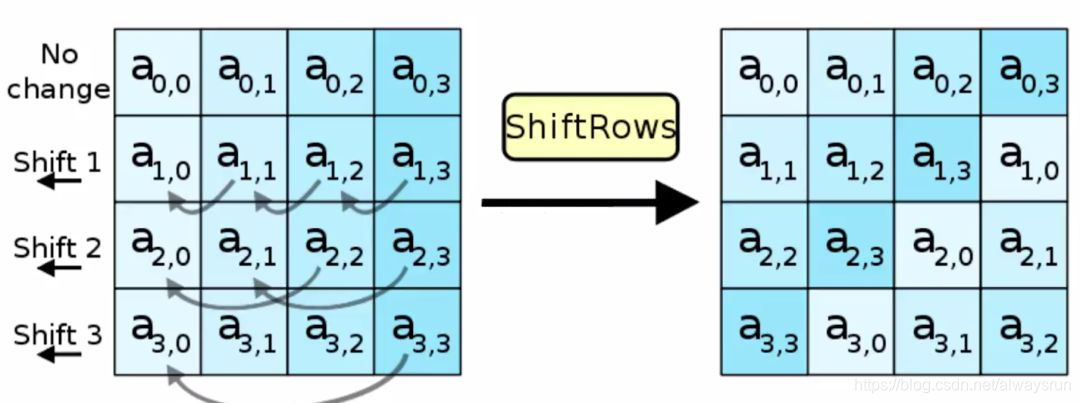 行移位:对2、3、4行进行移位操作