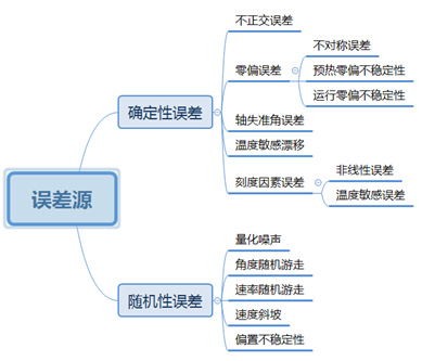 惯性导航系统中,硬件部分对精度造成影响的主要是IMU性能好坏,其误差源如下图所示: