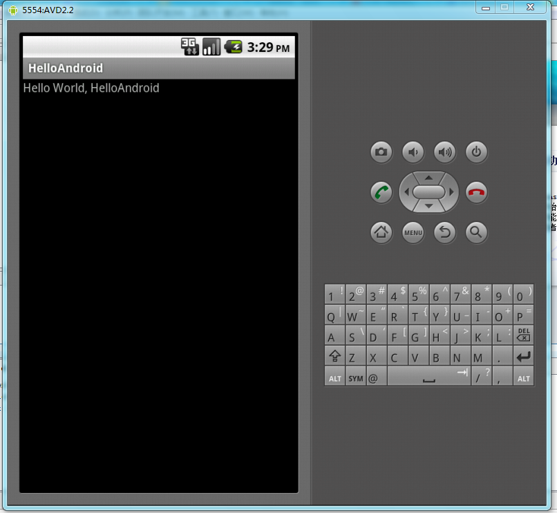- 作为测试,我们就不对代码进行任何改动了,直接在项目上击右键,运行,等一小会儿(Android的模拟器可是相当的慢呐),出现如下界面,OK,大功告成