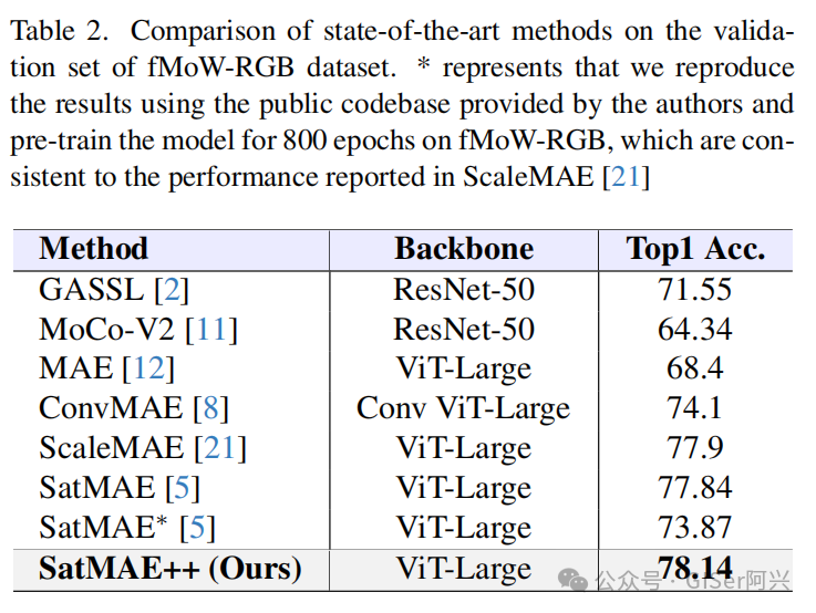 在表3中报告了fMoW-Sentinel数据集上的最新比较结果。