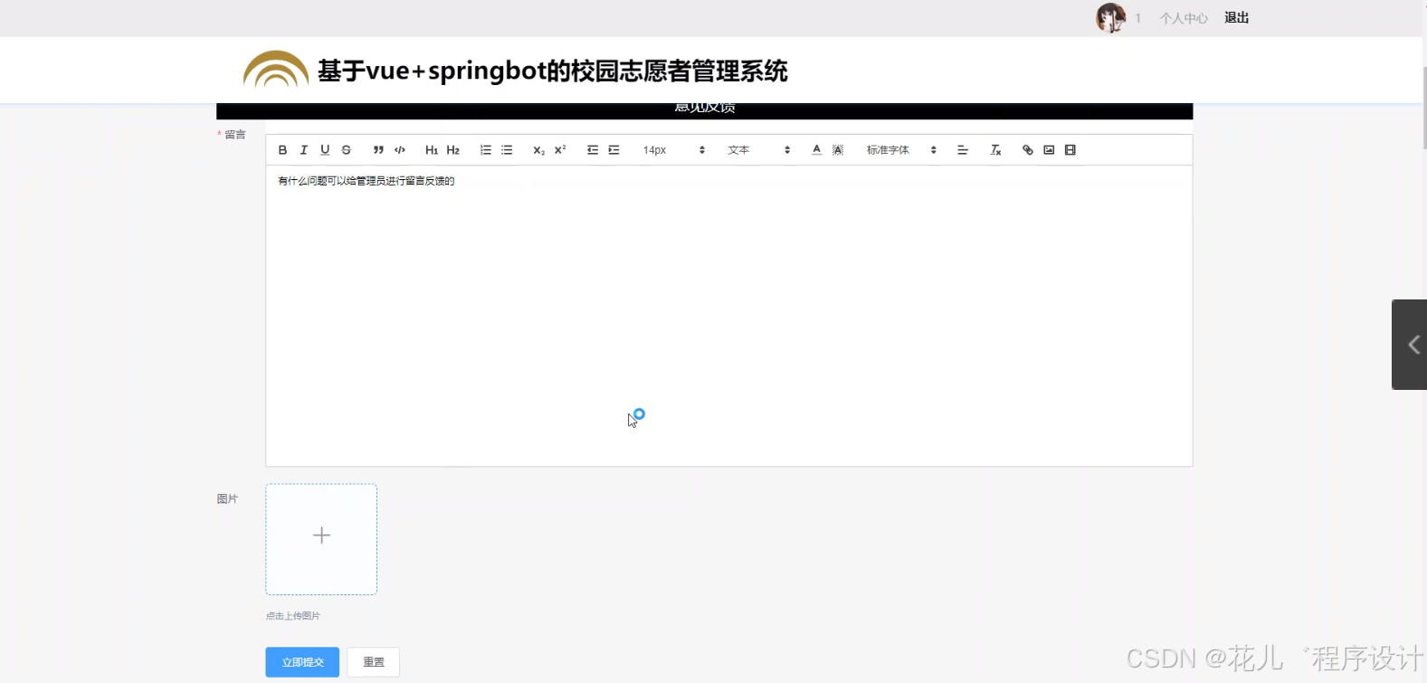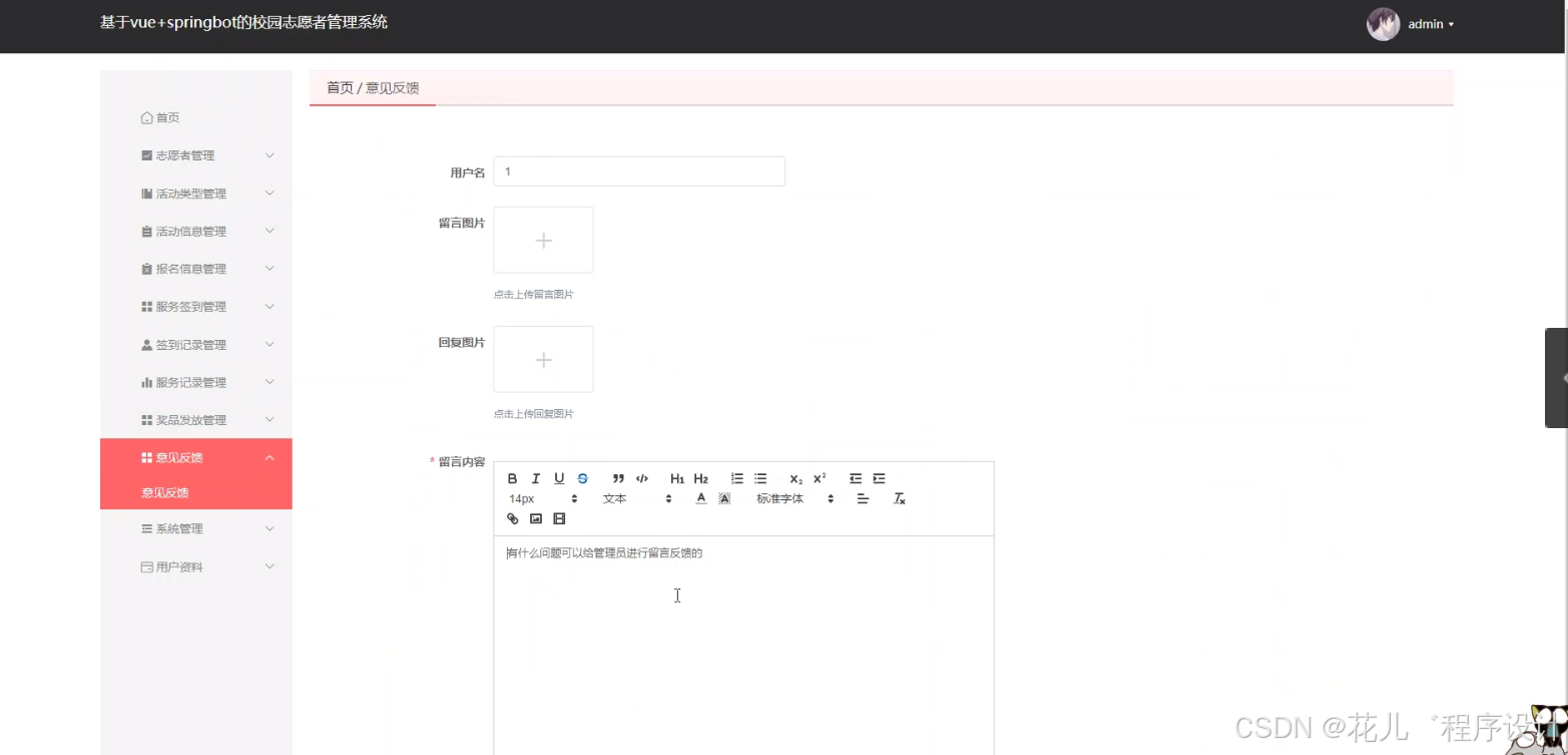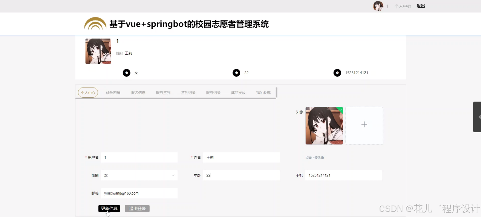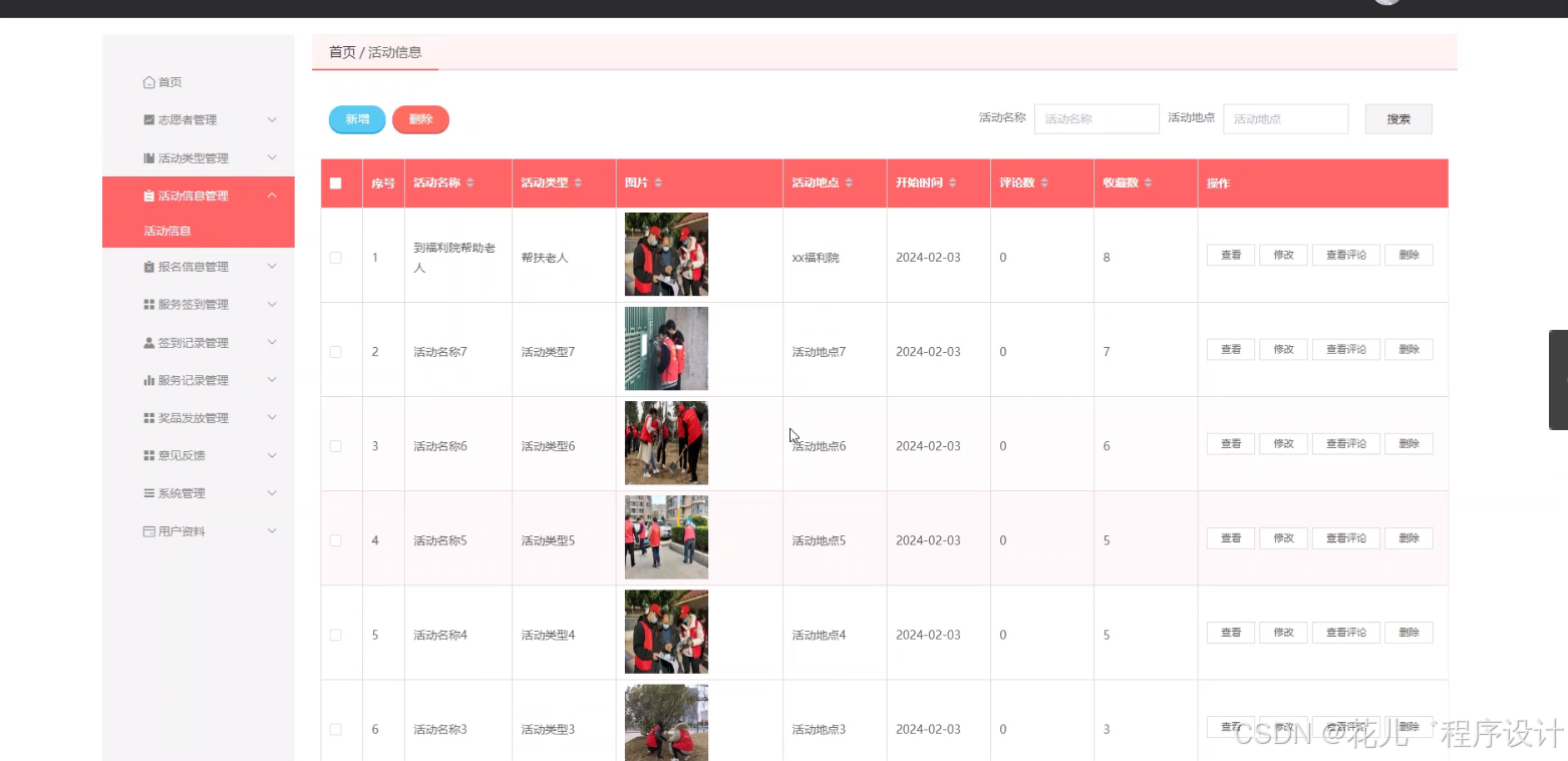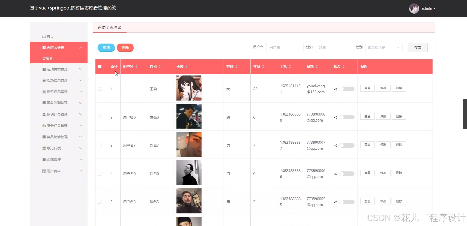 - 志愿者管理:包括志愿者的基本信息录入、查询、修改等功能。需要研究如何设计数据库结构来存储志愿者信息,如何通过Vue+的前端界面方便地进行操作。