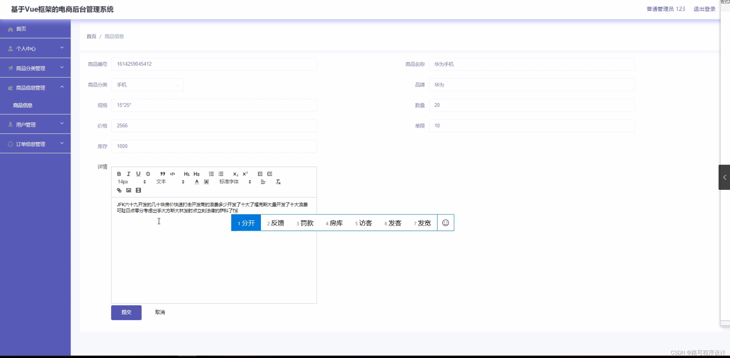 其次,基于Vue框架的电商后台管理系统可以提升用户体验。通过使用Vue框架,可以实现系统的快速响应和流畅交互,为用户提供良好的使用体验。此外,系统还可以根据用户的使用习惯和喜好进行个性化推荐,提高用户满意度和忠诚度。