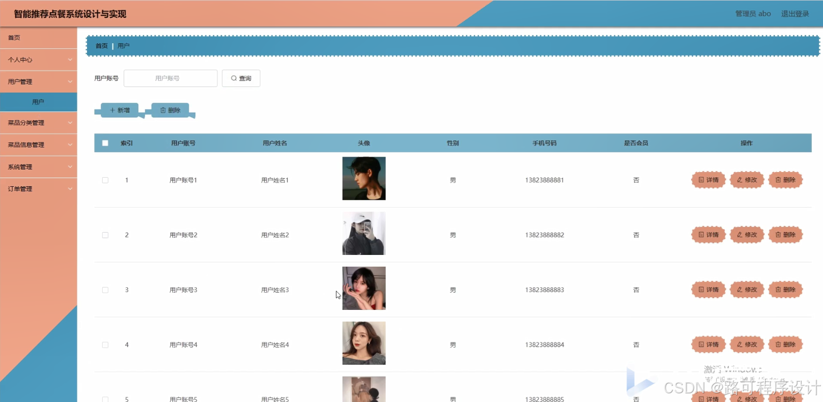 - 用户历史点餐记录管理:记录用户每次的点餐信息,包括点餐时间、菜品名称、数量、价格等。这些历史数据是智能推荐的重要依据,通过分析用户的点餐频率、消费金额等,可以更好地了解用户的消费习惯。