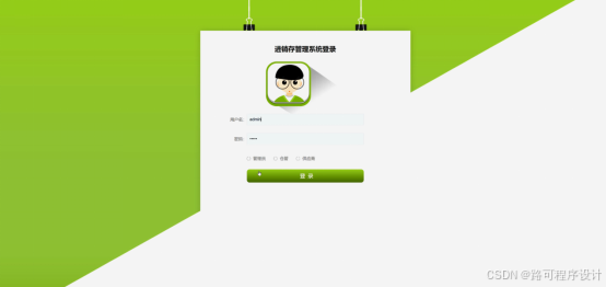 系统登录,在登录页面选择需要登录的角色,在正确输入用户名和密码后,点击登录进入操作系统进行操作;如图5-1所示。