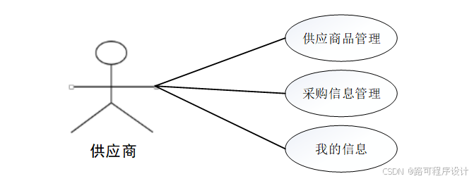 (2)、供应商关键功能包含供应商品管理、采购信息管理、我的信息等进行管理。供应商用例如下: