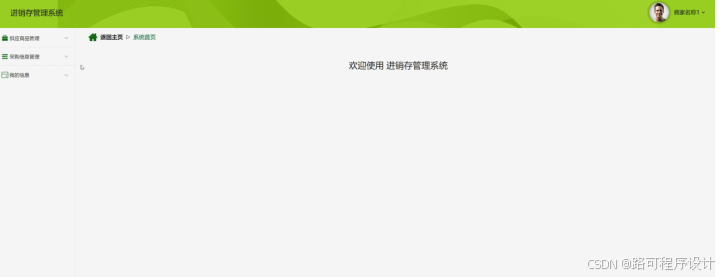 供应商进入系统可以对供应商品管理、采购信息管理、我的信息等功能进行操作。供应商主页面如图5-10所示: