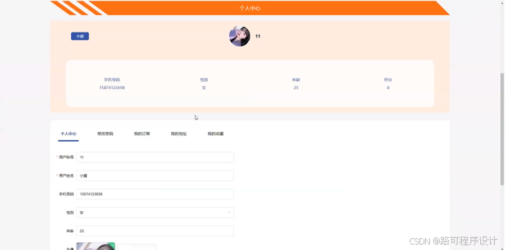 个人中心:在个人中心页面输入个人信息可以进行更新操作;如图5-5所示: