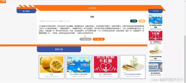 公告信息:在公告信息页面的输入栏中输入标题进行查询,可以查看到公告详细信息;公告信息页面如图5-4所示: