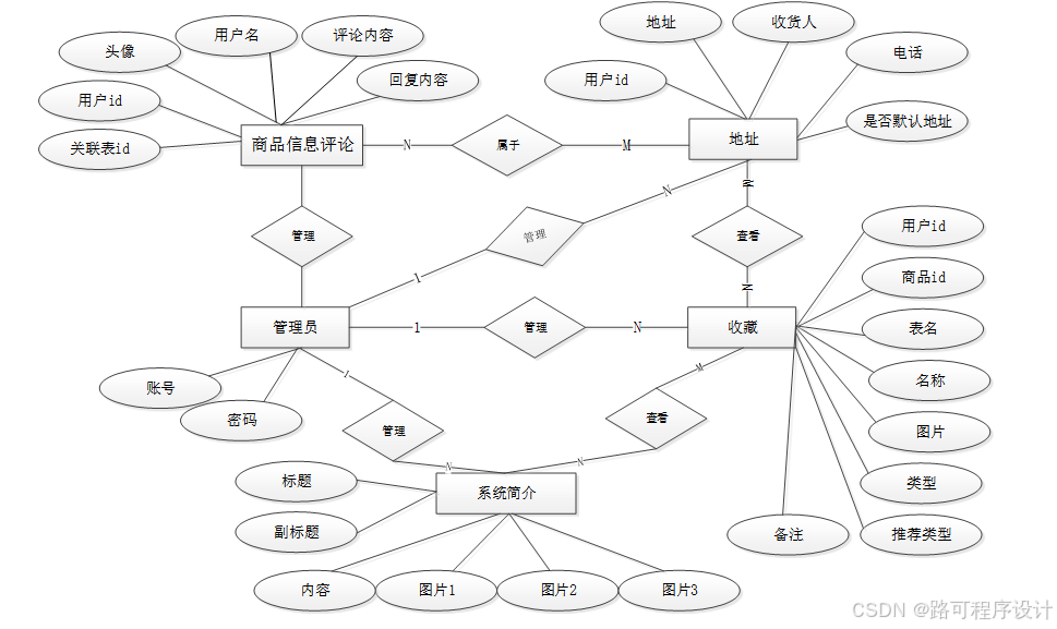 为了更直观阐明数据库的设计,使用 Vision 绘制的商场购物管理系统数据模型E-R实体属性图。根据系统需求设计了以下主要实体。