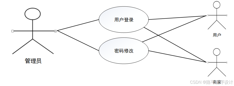 (1)系统的通用功能包括用户登录和密码修改,是三个角色共同需要使用的功能,用例分析如图3-1所示。